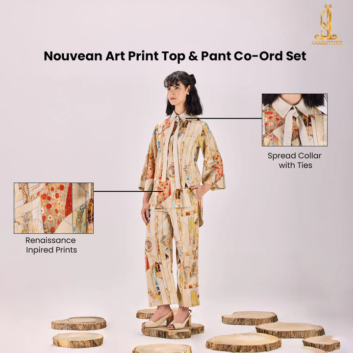 Stay cool and stylish this summer with Sammyukk’s artistic Co-Ord set. Featuring a contrast tie-neck top with elbow-length sleeves and matching pants, this breathable cotton flex outfit is perfect for summer soirées. Inspired by Gustav Klimt and Renaissance elegance, it blends timeless art with modern fashion. Ideal for art lovers, this set lets you wear history with flair. Look classy, feel comfy, and make a bold statement with Sammyukk.