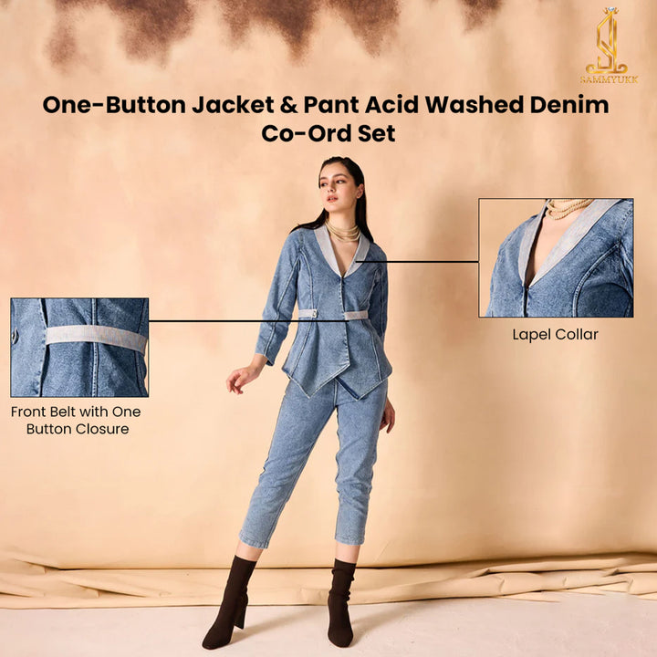 One-Button Jacket & Pant Acid Washed Denim Co-Ord Set